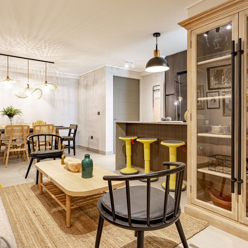 Gres porcelánico en baño secundario, living-comedor y terraza
