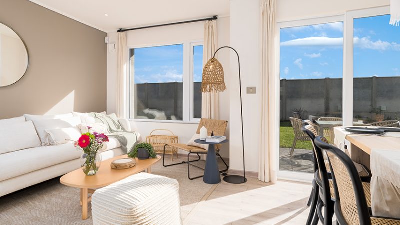 Piso fotolaminado en living comedor · Cubierta granito en cocina