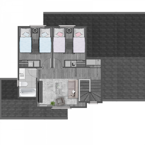Cocina full equipada con campana extractora, horno eléctrico, encimera y microondas