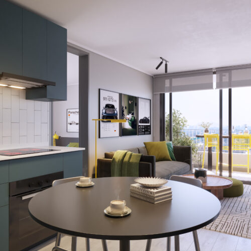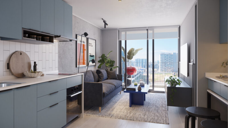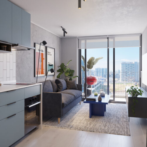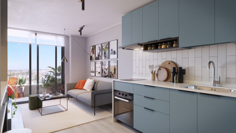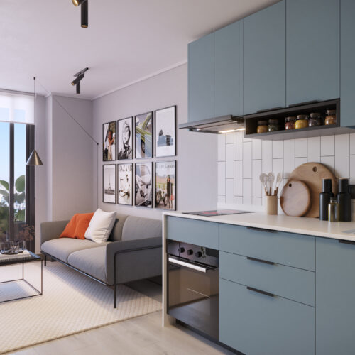 Cocina amoblada y equipada con campana, vitrocerámica y horno