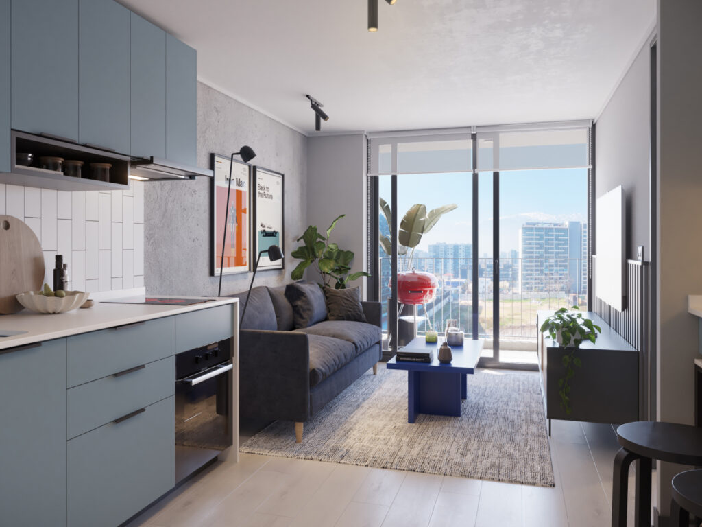 | Living - comedor - cocina | Living – comedor y cocina integrados |